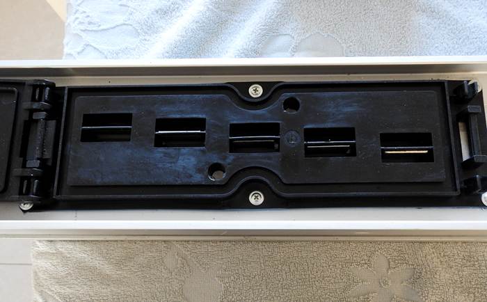 防止灰尘杂物掉入插孔内,图上所示为五个插座孔,分析判断是三相五线母线槽.