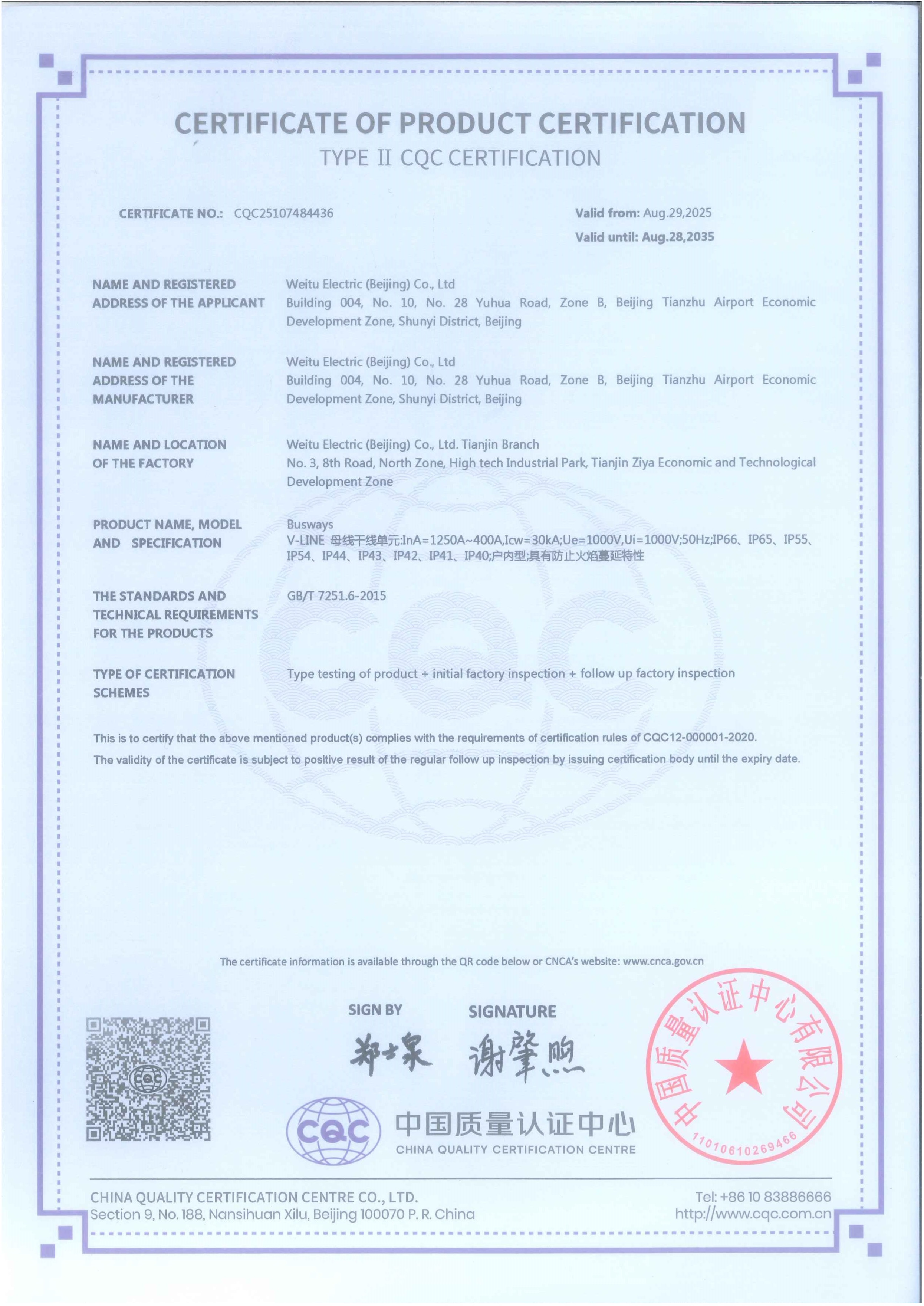 China Compulsory Certification Certificate for Sandwich Copper Busway (1250A-400A)